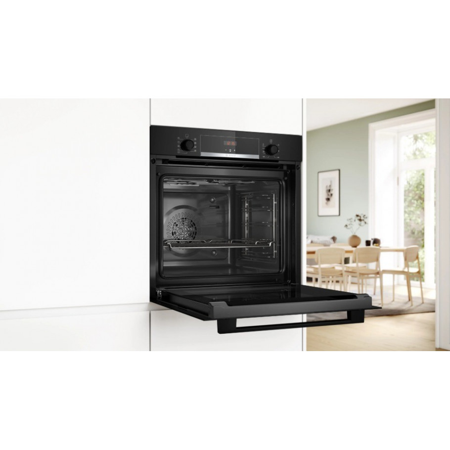 Energetska učinkovitost A+ smanjuje potrošnju energije, a moderan crni dizajn savršeno se uklapa u suvremene kuhinje. Ova Bosch pećnica idealan je izbor za korisnike koji žele pouzdanu, funkcionalnu i elegantnu ugradbenu pećnicu.