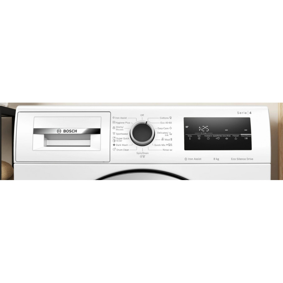 Bosch WAN24266BY je pouzdana front-load perilica rublja iz Bosch Serie 4 linije, dizajnirana za učinkovito svakodnevno pranje i praktične funkcije koje štede energiju, vodu i Vaše vrijeme. Uređaj kombinira njemačku kvalitetu izrade s jednostavnim upravljanjem, tišim radom i korisnim programima.