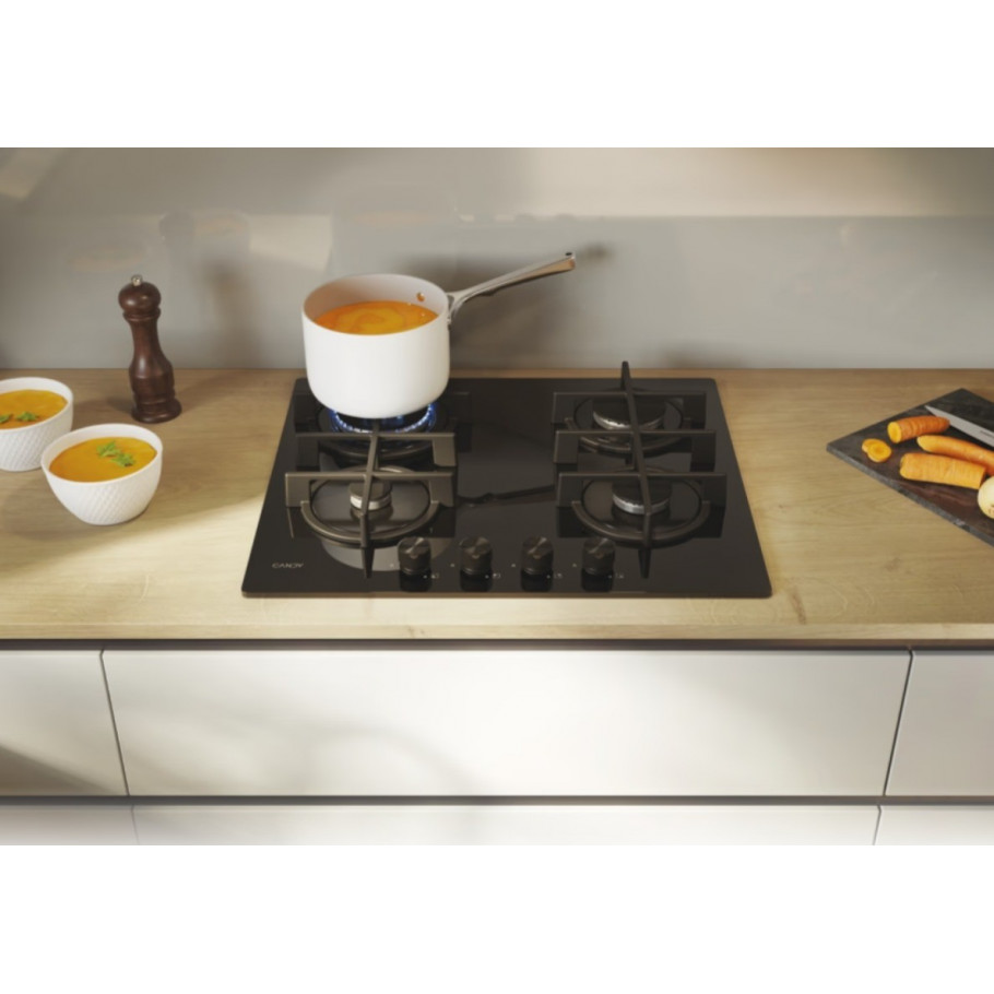Elegantan i funkcionalan izbor za modernu kuhinju – Candy CVG6BR4WTB je ugradbena plinska ploča s četiri plamenika koja spaja vrhunsku izvedbu s izdržljivim dizajnom. Ova ploča na kaljenom staklu u crnoj boji idealna je za sve koji žele pouzdanu, jednostavnu i vizualno privlačnu ploču za svakodnevno kuhanje.
