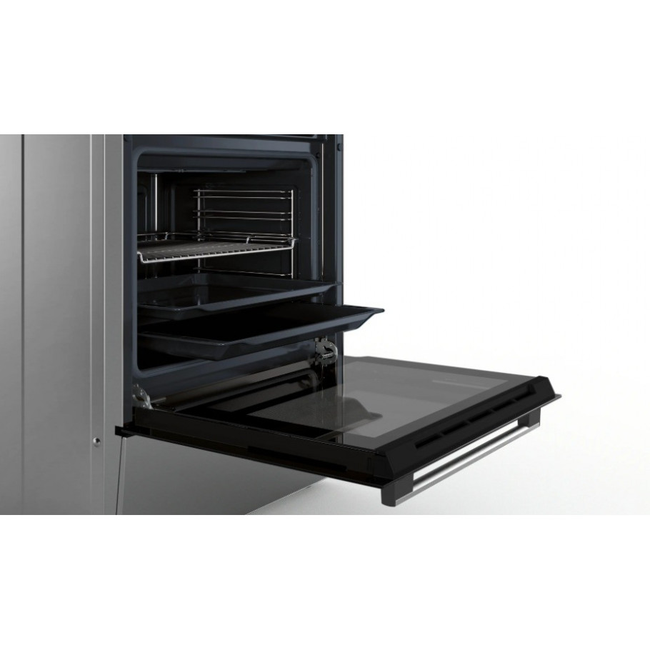 Samostojeći električni štednjak Bosch HKA090150 idealno je rješenje za modernu kuhinju. Opremljen je staklokeramičkom pločom s četiri polja za kuhanje i prostranom pećnicom od 66 litara s više načina grijanja. Zahvaljujući tehnologiji 3D vrućeg zraka, omogućuje ravnomjerno pečenje na više razina istovremeno, dok praktične funkcije poput brzog zagrijavanja i halogenog osvjetljenja osiguravaju jednostavno i ugodno korištenje.