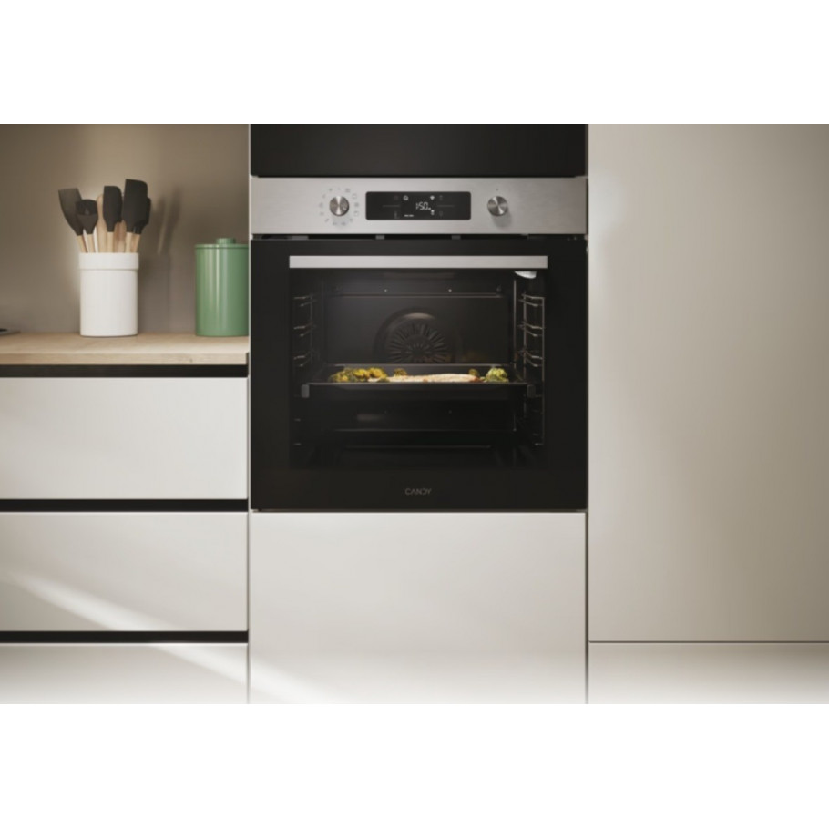 Ova Candy pećnica ima moderan inox dizajn, teleskopske vodilice za jednostavno rukovanje plehovima i jasan digitalni Smart View zaslon koji olakšava izbor programa.