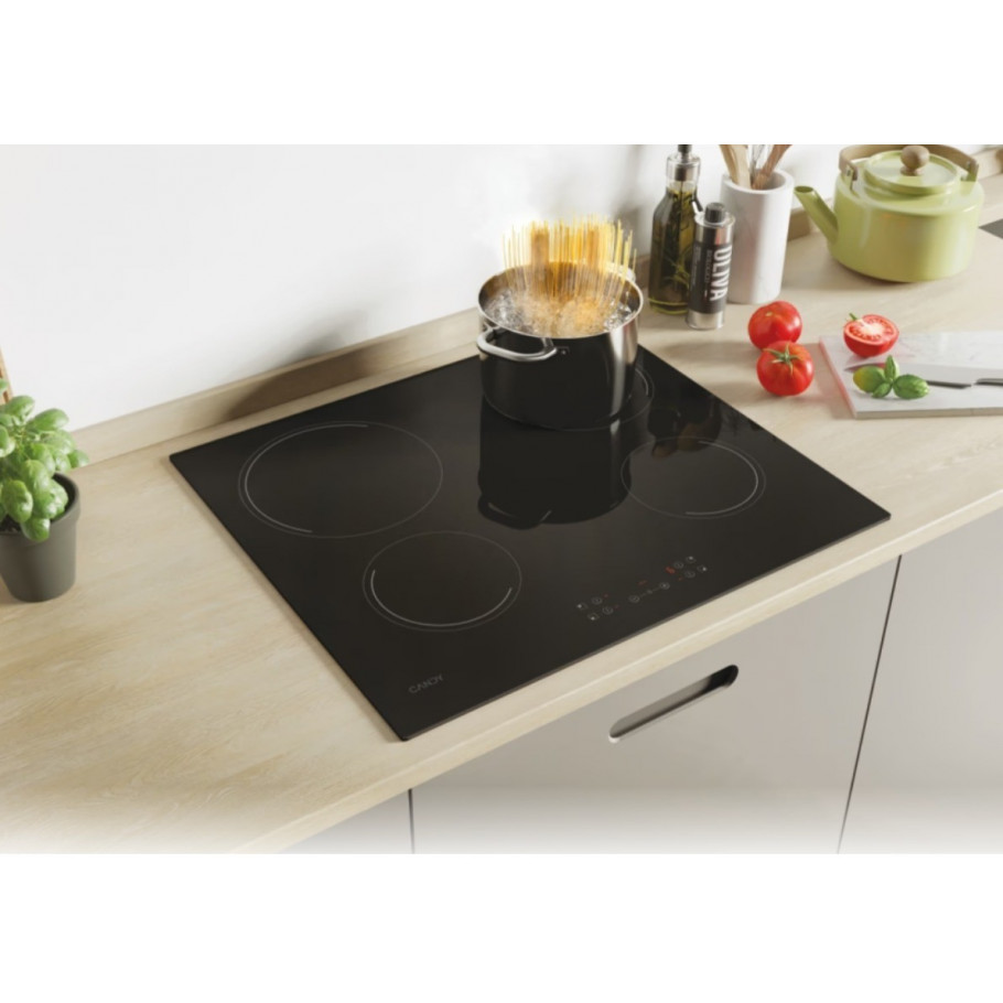 Elegantan i funkcionalan dodatak svakoj modernoj kuhinji, Candy CH64CCB ploča za kuhanje kombinira jednostavan dizajn s intuitivnim upravljanjem — idealna je za svakodnevno kuhanje bez kompromisa.
