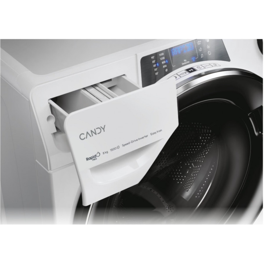 Ova perilica ima čak 16 programa pranja uključujući 9 brzih ciklusa ispod sat vremena (14’, 29’, 30’, 39’, 44’, 59’), pa bez obzira da li ti treba brzo osvježenje majica ili temeljito dubinsko čišćenje, Candy zna odgovor.
