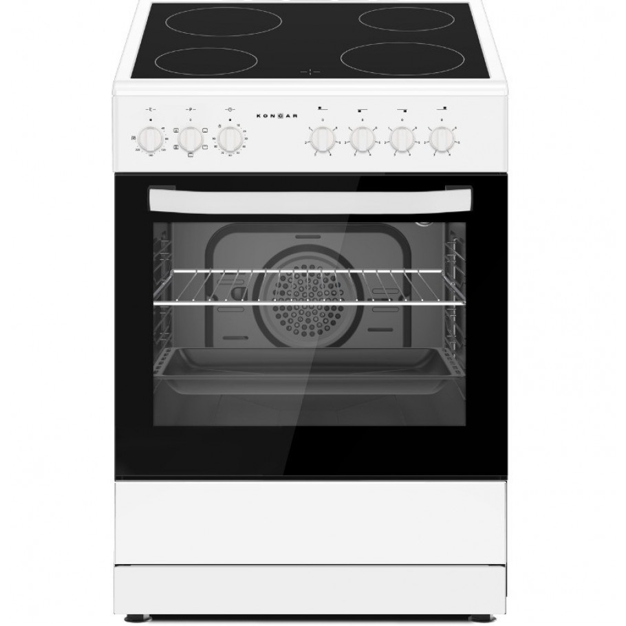 Končar ST6040KBS je standardni štednjak s električnom staklokeramičkom pločom i ventilatorskom pećnicom, prikladan za kućanstva koja žele modernu i jednostavnu površinu za kuhanje te dobru funkcionalnost pečenja u srednjoj veličini pećnice.